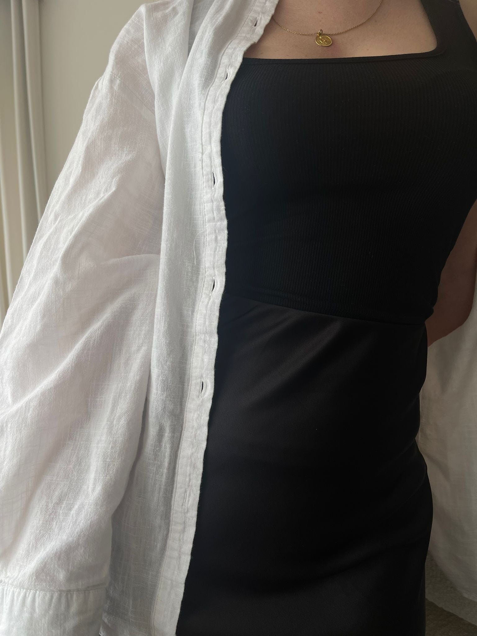 Description :Le tissu est un coton finement côtelé très doux, confortable, respirant et extensible. Disponible en beige et en noir